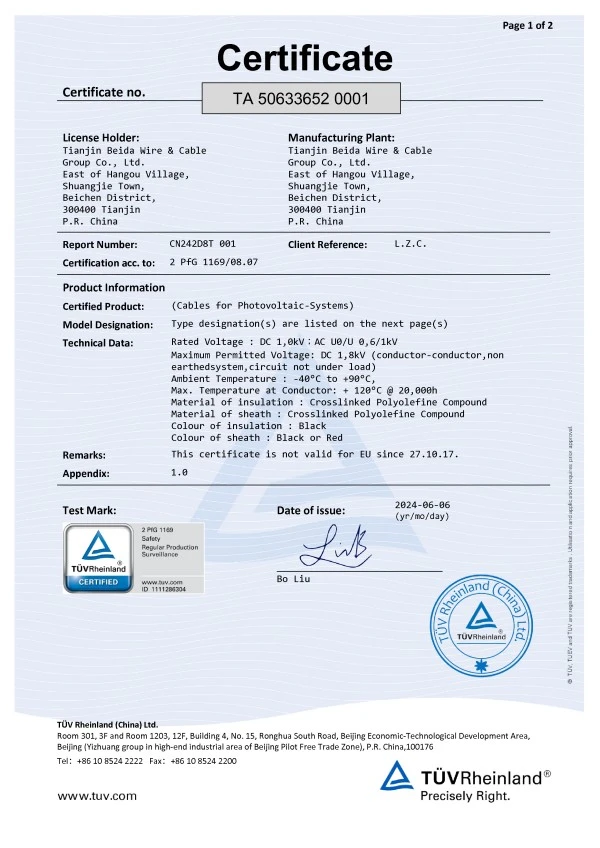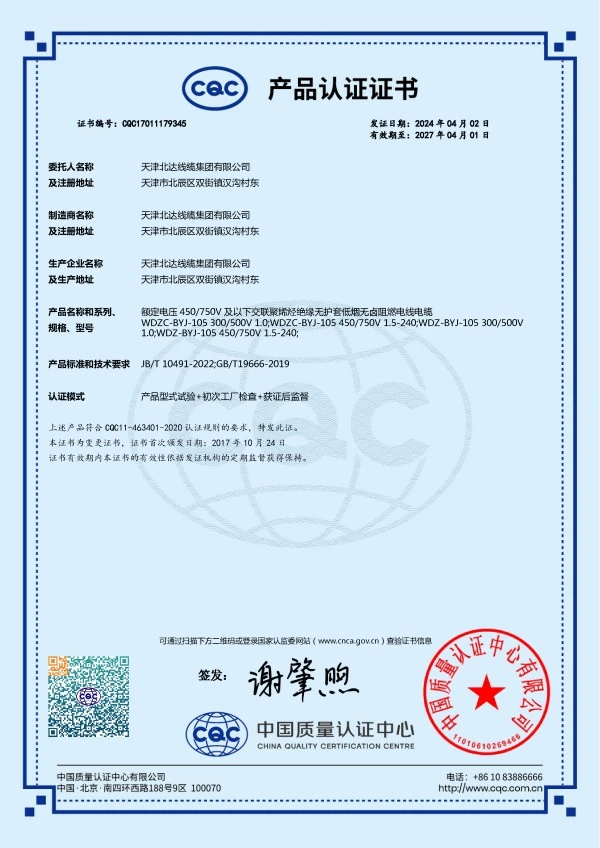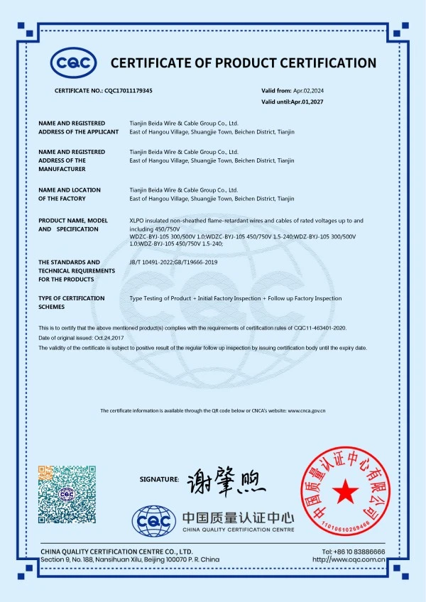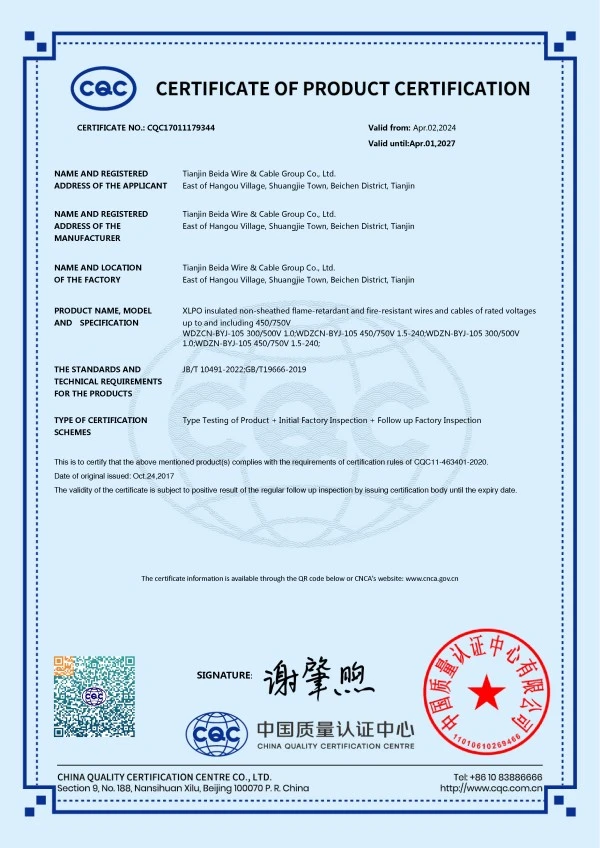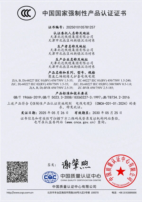 Since its establishment, the company has always taken "Manufactured with Dedication, Quality from Beida" as its corporate development vision and adhered to "People-Oriented, Integrity-Based" as the fundamental principle of its business. It has successively obtained ISO9001 Quality Management System Certification, ISO14001 Environmental Management System Certification, OHSAS18001 Occupational Health and Safety Management System Certification, CCC National Product Certification, National Industrial Production License Certification and Photovoltaic Product Certification. The company's product standards implement the quality policy of "Exceed National Standards, Ensure Qualified Product Performance". The production process undergoes strict inspections at multiple levels, including incoming raw material inspection, in-process self-inspection, patrol inspection, and factory outgoing inspection, to ensure that all Beida products entering the market are free from quality hazards, providing customers with reassurance, satisfaction and peace of mind.