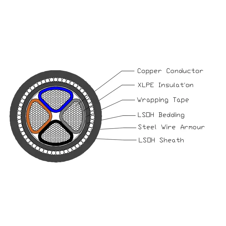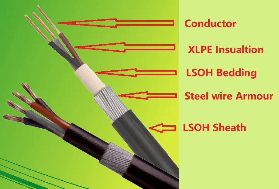 BS 6724 Power Cable is composed of a T1R copper conductor , XLPE insulation, PVC bedding, Steel-weirs armour and LSOH sheath.